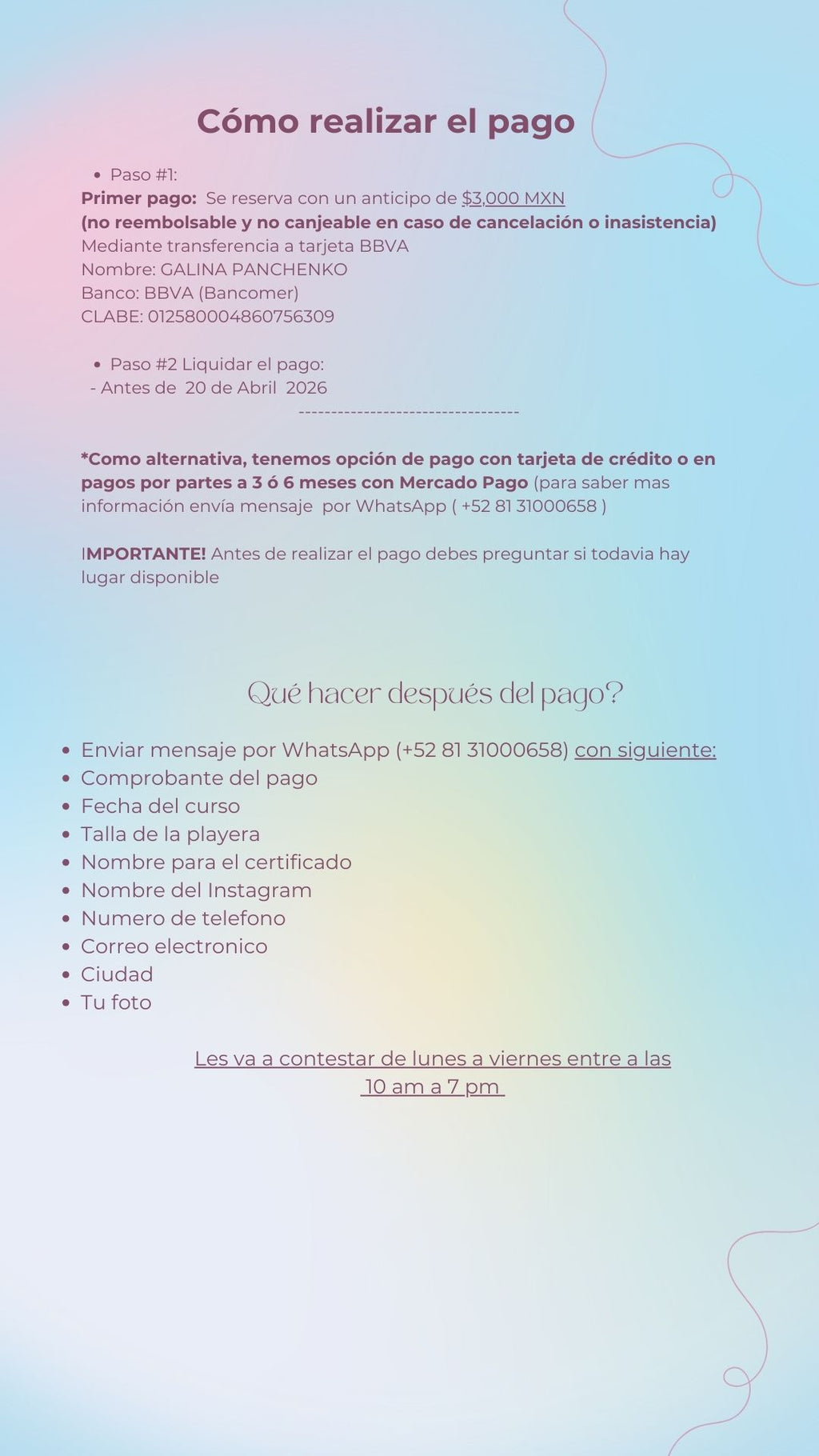 📅 26,27,28 de Mayo (se abre después de llamar la primera fecha)