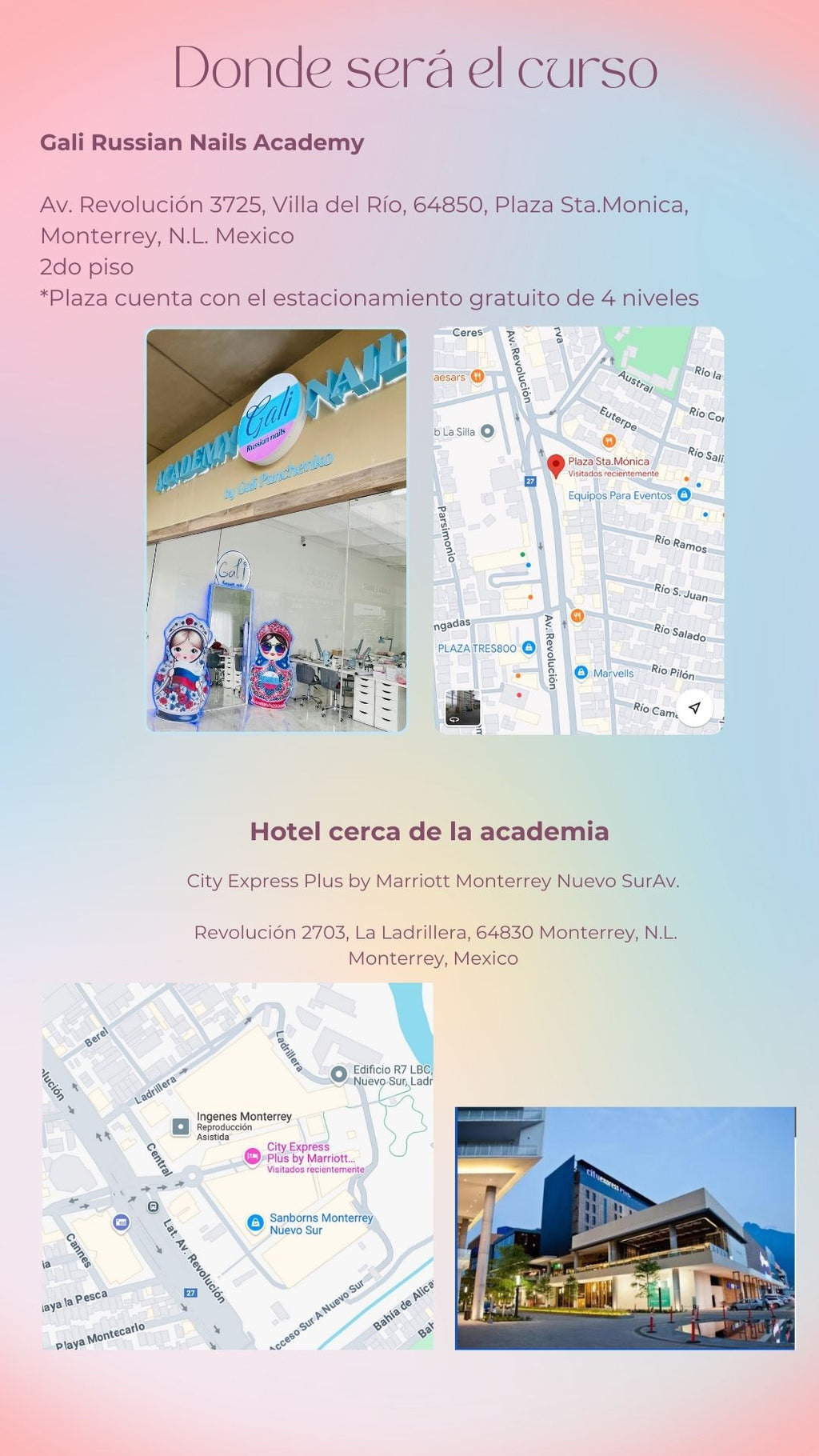 📍 Lugar : Gali Russian Nails Academy, Av.Revolución 3725, Villa del Río. 64850, Plaza Sta Mónica